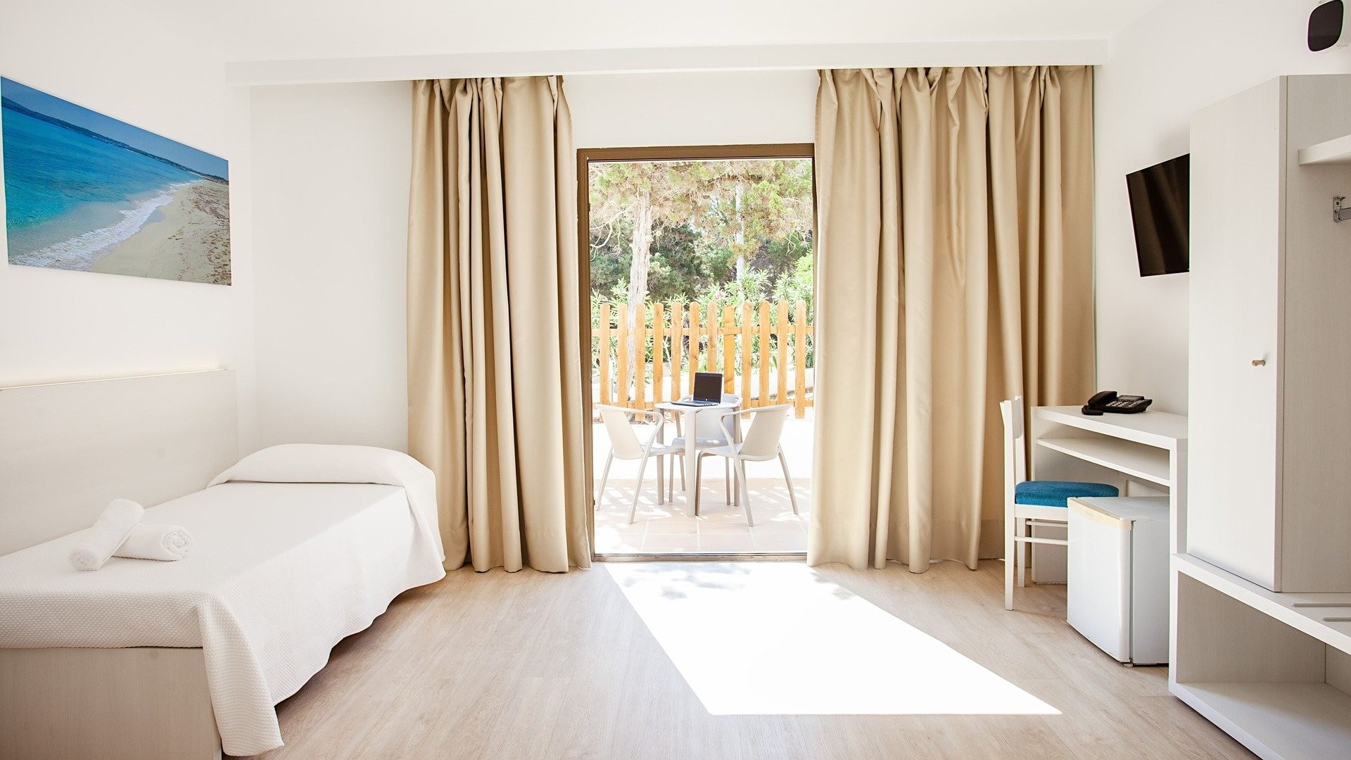 Hotel 3 stelle a conduzione familiare con oltre 50 anni di storia, che unisce il fascino della tradizione al comfort moderno grazie a numerosi interventi di ristrutturazione. L’ospitalità resta però sempre calda e personalizzata, con un’attenzione speciale a ogni ospite. Le camere sono confortevoli, curate e accoglienti, perfette per rilassarsi dopo una giornata al mare. Il vero punto forte? La posizione, nel cuore vivace di Es Pujols! Da qui potete vivere l’isola a vostro ritmo: esplorare di giorno calette da sogno e angoli nascosti di natura, e immergervi di sera nell’energia dei ristoranti, bar e locali sul lungomare. A pochi passi dall’hotel la mitica e vivace spiaggia di Es Pujols. Durante il giorno, Es Pujols è sinonimo di relax e bellezza naturale, grazie alle sue acque trasparenti e la sabbia bianchissima, ma al tramonto si accende di energia: i chiringuitos servono cocktail con vista mare, i ristoranti offrono cucina mediterranea di alto livello e le boutique del lungomare invitano allo shopping tra un aperitivo e l’altro. Naturlamente non potrete fermarvi solo qui. A soli dieci minuti di strada, con un’auto o uno scooter a noleggio, ogni giorno potrete tuffarvi in un mare diverso: dalle iconiche Ses Illetes e Llevant, alla pittoresca Cala Saona o, ancora, all’immensa Playa Migjorn con i suoi chiringuitos. Formentera vi sorprenderà ad ogni passo! Quando cala la sera, invece, potrete scegliere: proseguire il relax con una passeggiata sul lungomare animato di Es Pujols, tra boutique, ristoranti e caffè, oppure lanciarvi nel cuore della movida locale. Tra i protagonisti della notte spicca il Pineta Club, gemello dell’omonima discoteca di Milano Marittima, con DJ internazionali e serate a tema. Oppure il leggendario Chezz Gerdi, il locale più iconico famoso per il suo indimenticabile furgoncino Volkswagen “Formentera”, dove il divertimento si mescola ad aperitivi al tramonto e feste in pieno stile Flower Power. Una notte qui è pura energia!