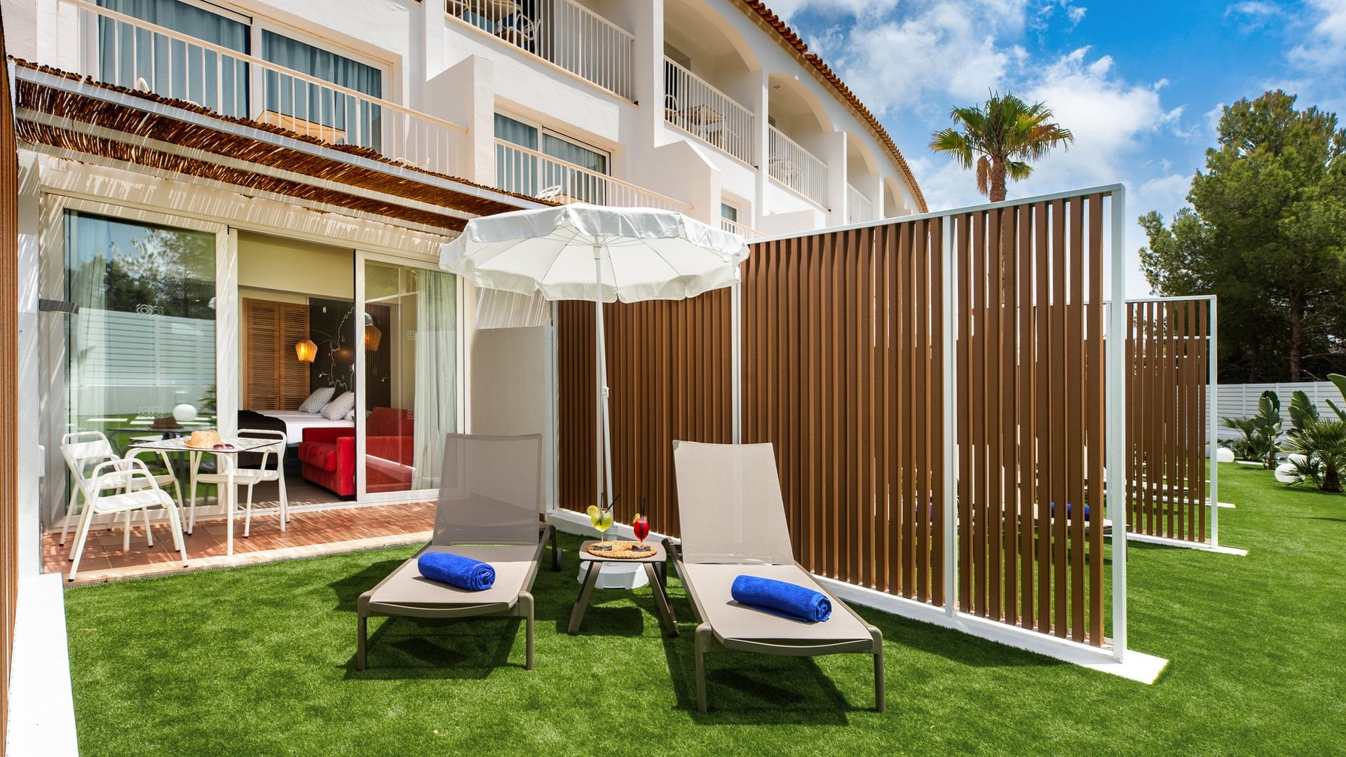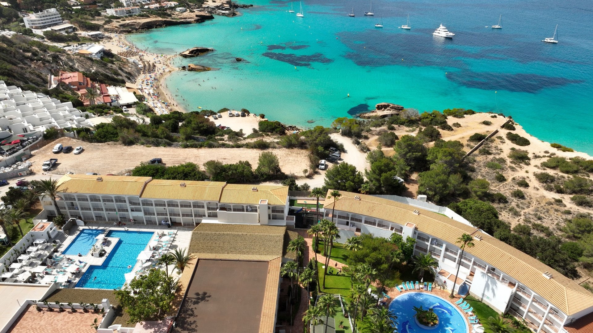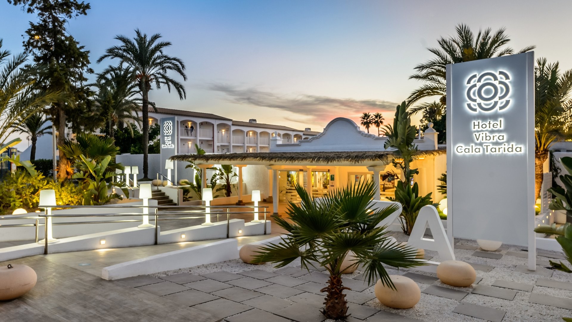 Ci troviamo a Cala Tarida, in uno degli hotel più conosciuto ed apprezzato di Ibiza sul mercato italiano, in particolare da una clientela alla ricerca del più assoluto relax balneare, del bel mare e del contatto con la natura. L’hotel, negli ultimi anni completamente rinnovato con stile più moderno ed arredi di design davvero eleganti e ricercati, sorge infatti in posizione panoramica sul mare e sull’omonima spiaggia che si raggiunge dall’hotel tramite una comoda e più diretta scalinata. La spiaggia è una baia abbastanza ampia e dalla sabbia color borotalco, lambita da acque cristalline dalle sfumature azzurre, turchesi e verde acqua sgargianti. Vicino l’hotel si trova poi il paesino di Cala Tarida, un piccolo centro sicuramente molto tranquillo dove trovare qualche negozio e qualche buon ristorante. Il tutto però in un clima assolutamente rilassato, decisamente lontano dal caos e dalle feste di Playa d’en Bossa o di San Antonio. Volendo però, magari almeno una volta, vedere con i propri occhi la tanto rinomata e chiacchierata movida ibizenca, San Antonio con i suoi bar chill out del West End come l’intramontabile Cafè del Mar, le discoteche sulla Sunset Strip prese d’assalto da giovani di tutta Europa, o Ibiza città, capoluogo dove storia e cultura convivono con divertimento e trasgressione, non sono poi così distanti e sono facilmente raggiungibili anche con gli autobus che fermano proprio di fronte all’hotel. Attorno a Cala Tarida, nel raggio di non più di 10/15 km si trovano altre spiagge superlative: se ci spostiamo infatti un po’ verso nord troveremo Cala Comte e Cala Bassa, due perle che si aprono tra le rocce, immerse in una natura ancora selvaggia e incontaminata. In direzione opposta, invece, troviamo altre due eccellenze di mare, Cala Vedella e Cala d’Hort.