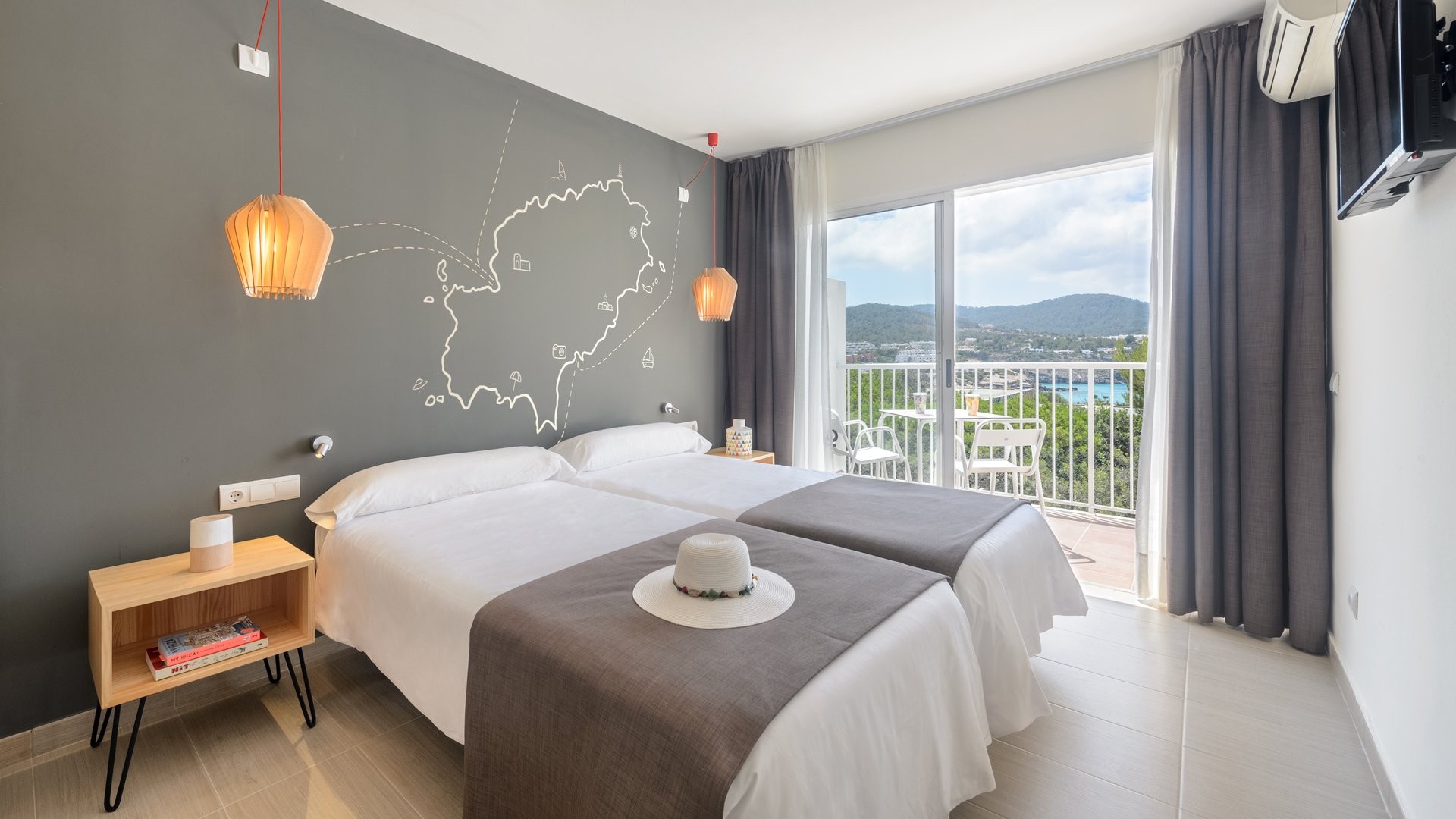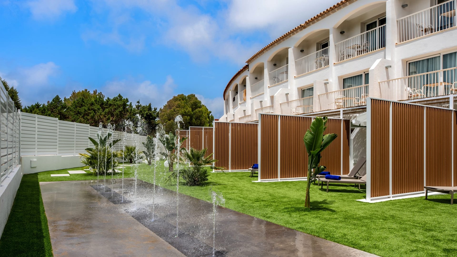 Hotel a Cala Tarida, elegante e moderno, con accesso diretto a una baia di sabbia fine e acque cristalline. Perfetto per relax e natura, vicino a un piccolo centro tranquillo. La movida di San Antonio e Ibiza città è facilmente raggiungibile, così come splendide spiagge nei dintorni: Cala Comte, Cala Bassa, Cala Vedella e Cala d’Hort.