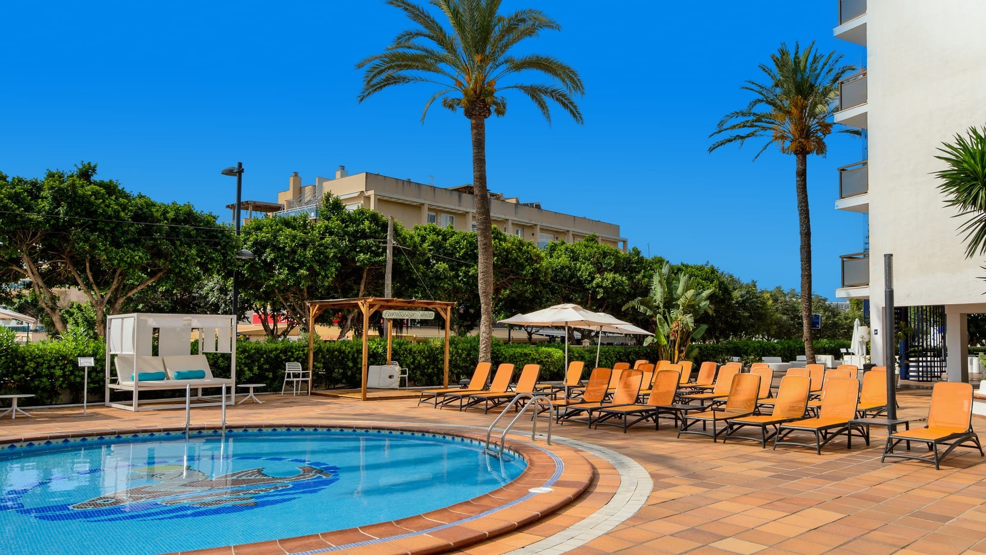 3 piscine, 2 a pian terreno di cui una separata per bambini e 1 sulla terrazza dell’ultimo piano. Tutte e 3 sono attrezzate con ombrelloni, lettini e teli mare a disposizione degli ospiti. Connessione Wi-Fi gratuita anche nelle aree comuni, parcheggio. A pagamento, servizio lavanderia, servizio medico, negozio di souvenir, biliardo, sala riunioni e conferenze, noleggio auto e moto.