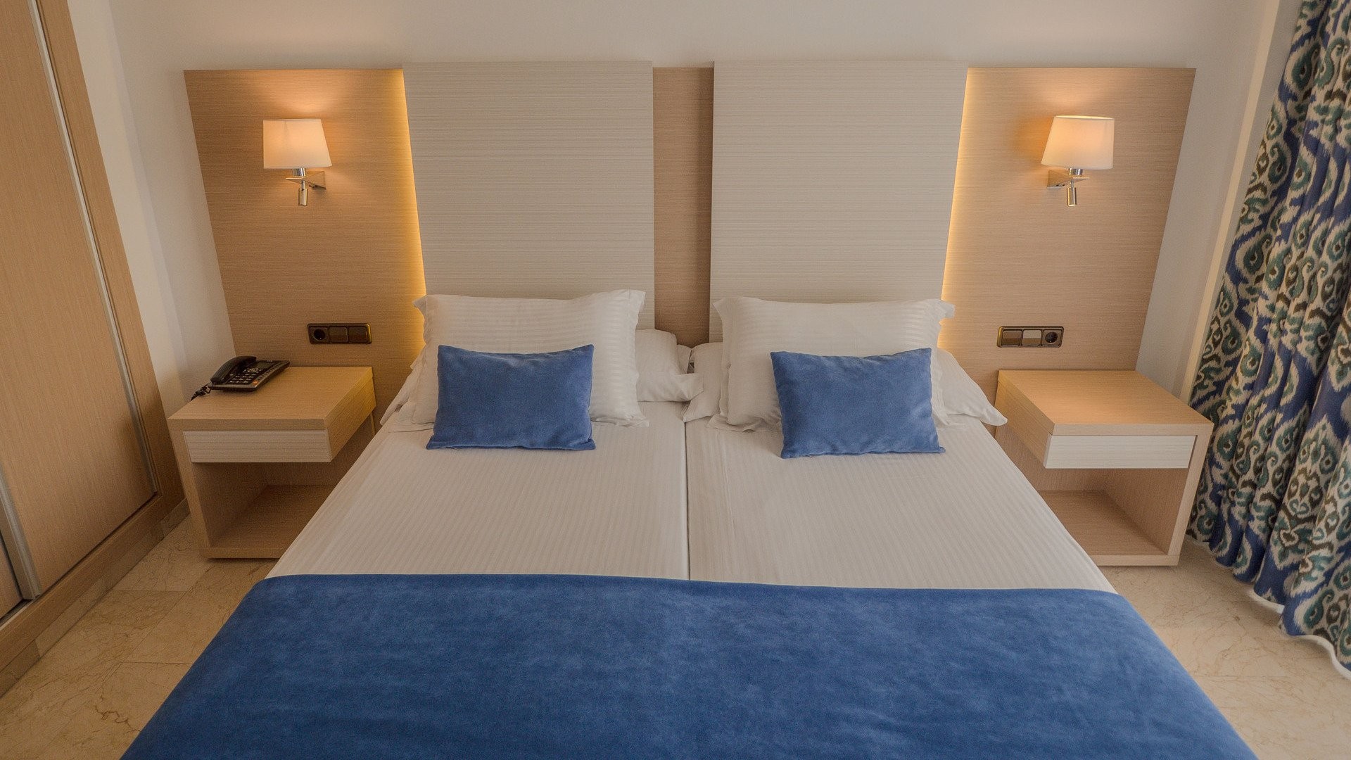 210 camere (11 m2 – capienza massima 3 persone), tutte dotate di servizi privati, asciugacapelli, aria condizionata, telefono, tv satellitare, terrazza o balcone. A pagamento, cassetta di sicurezza e connessione wi-fi, invece gratuita nelle aree comuni.