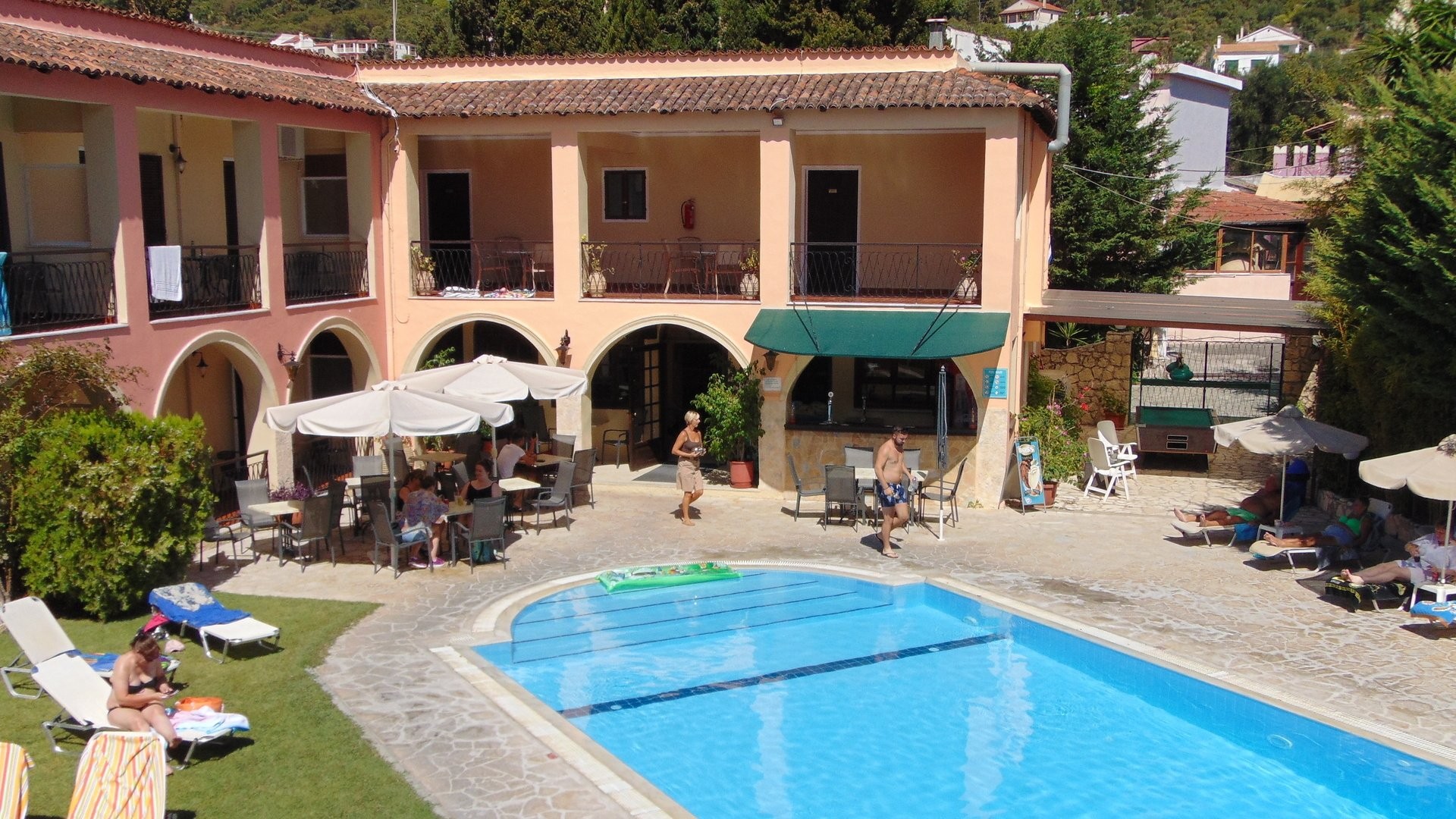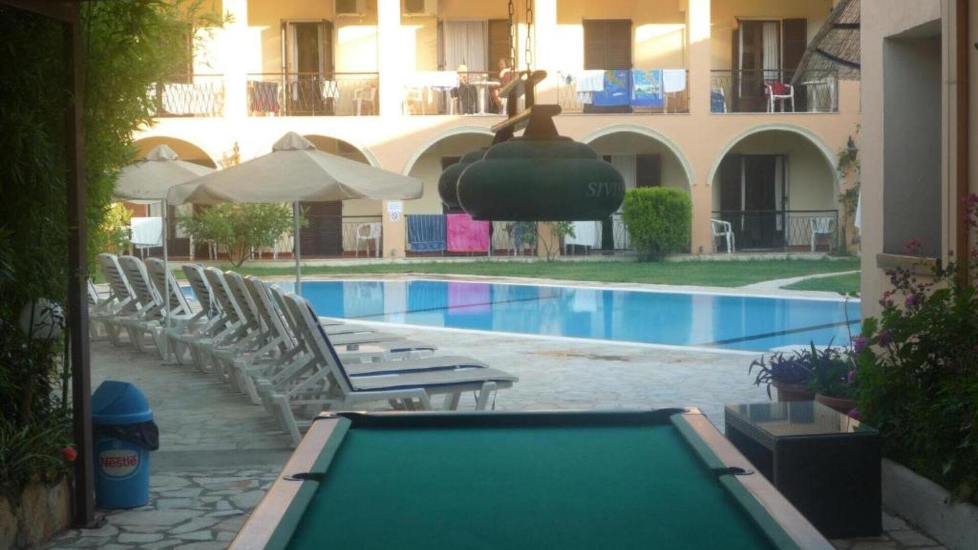 Si tratta di una struttura accogliente che vanta una buona posizione a pochi minuti dalla spiaggia e dal cuore pulsante di Ipsos, la location preferita da tutti quei giovani italiani alla ricerca della movida più vivace dell’isola, in particolare nei mesi di luglio e agosto, quando neodiplomati o universitari del nostro Paese tradizionalmente si riversano in massa proprio in questa piccola località per scatenarsi totalmente. L’hotel ha uno standard superiore rispetto al livello medio di Ipsos: offre appartamenti ampi e arredati in modo curato, che possono ospitare 3 o 4 amici, e una zona piscina molto graziosa e rilassante, che può diventare un rifugio per prendere un po’ fiato dopo le scorribande notturne. Nonostante sia innegabile che la tipica vacanza a Ipsos si concentri molto su mare e divertimento nei bar e nei locali della zona, non va dimenticato che Corfù Town si trova ad appena 15 km ed è scenario di tutt’altro livello sia per vita notturna più “adulta” e chic, sia per digressioni culturali davvero degne di nota.