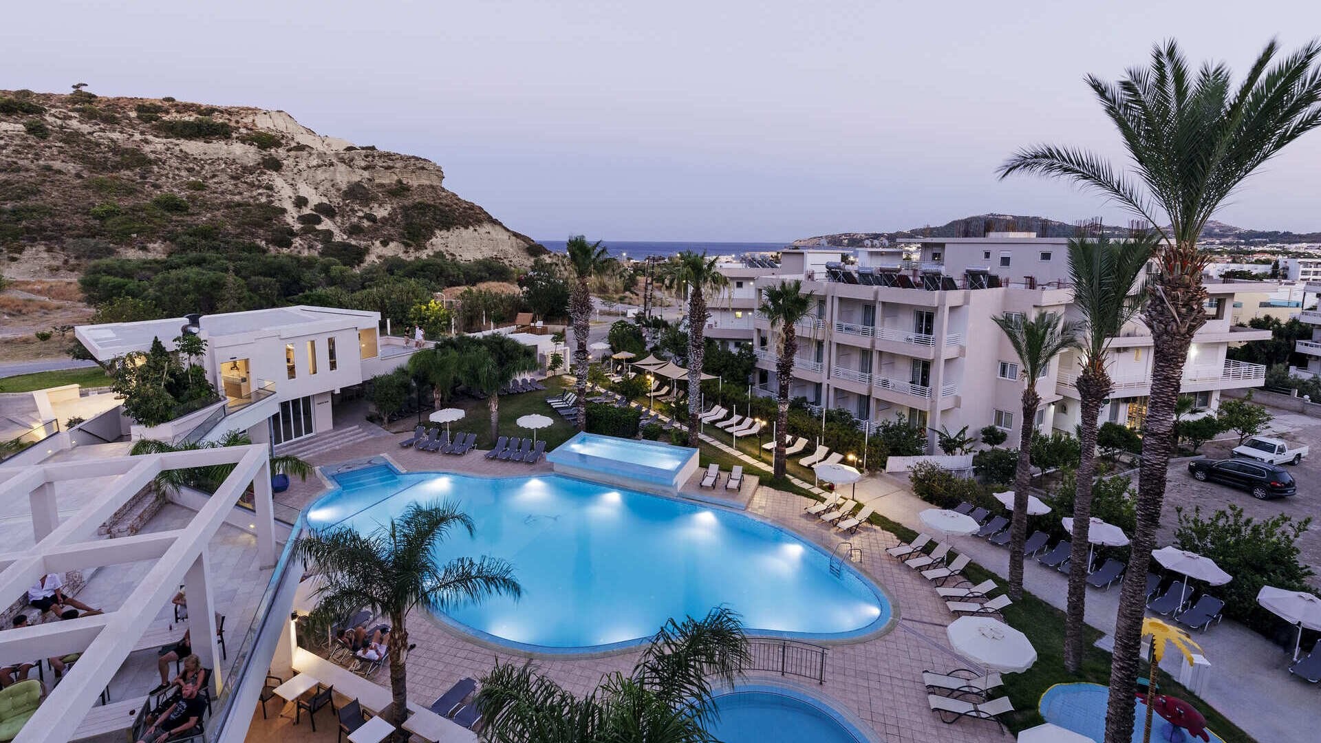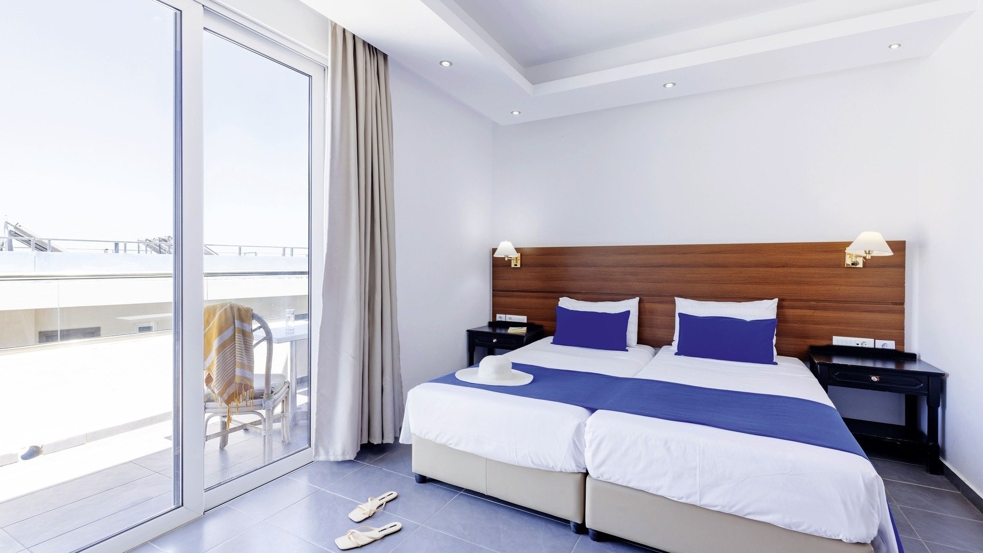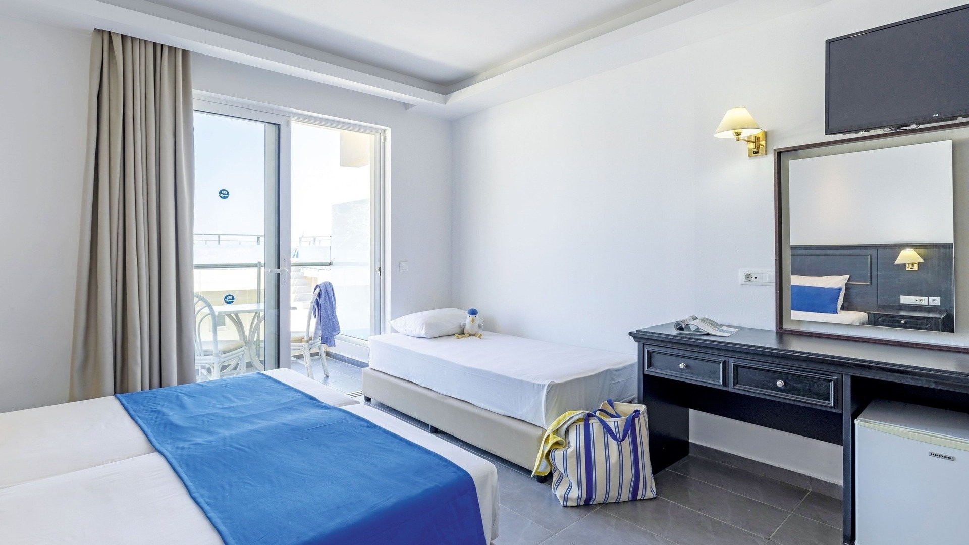 130 camere di cui standard (24 m2) dotate di servizi privati, asciugacapelli, aria condizionata, TV satellitare, connessione Wi-Fi gratuita, minifrigo, telefono, terrazza o balcone. Disponibili con supplemento, camere family (30 m2 – max 4 adulti) alcune con unico ambiente, altre con due ambienti semi-separati (senza porta) con 3° e 4° letto aggiunto.