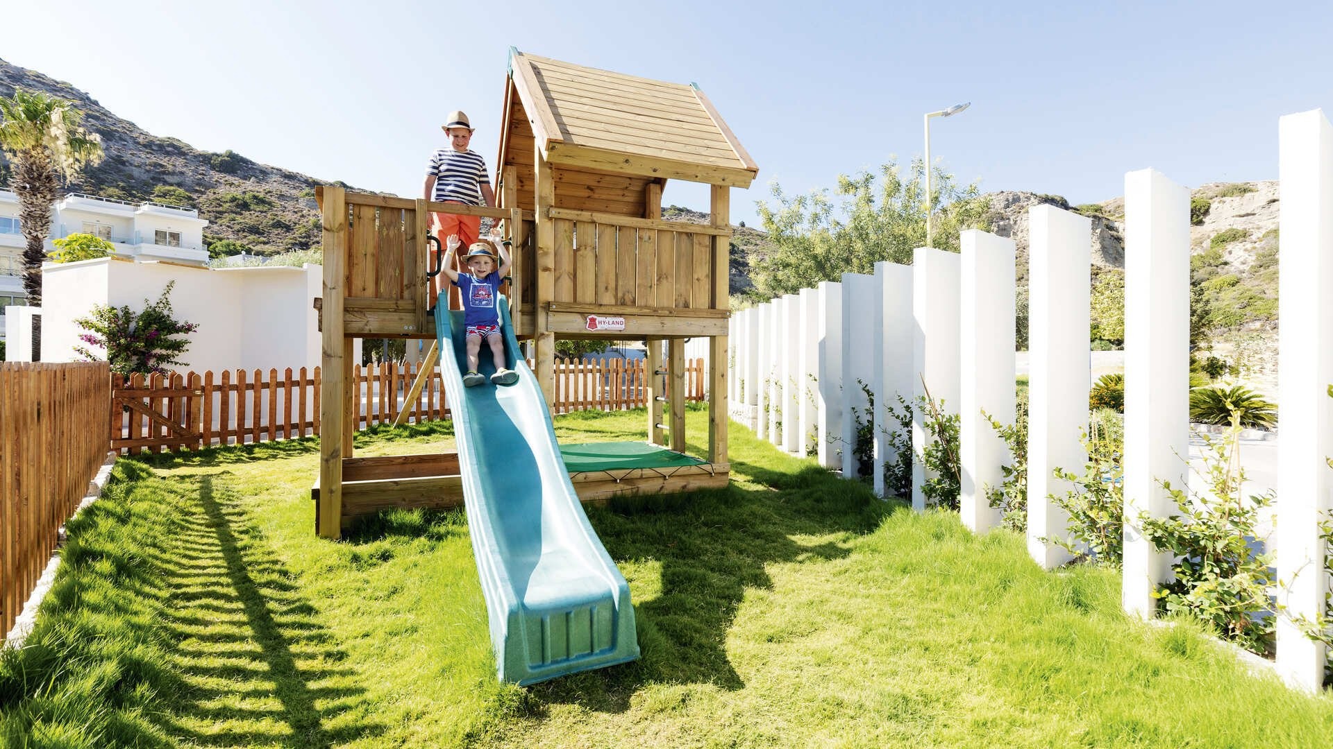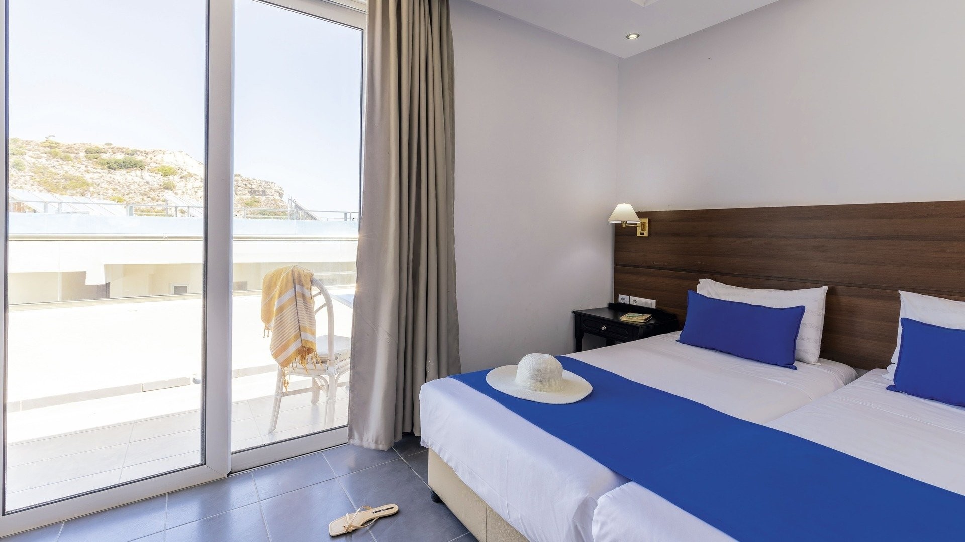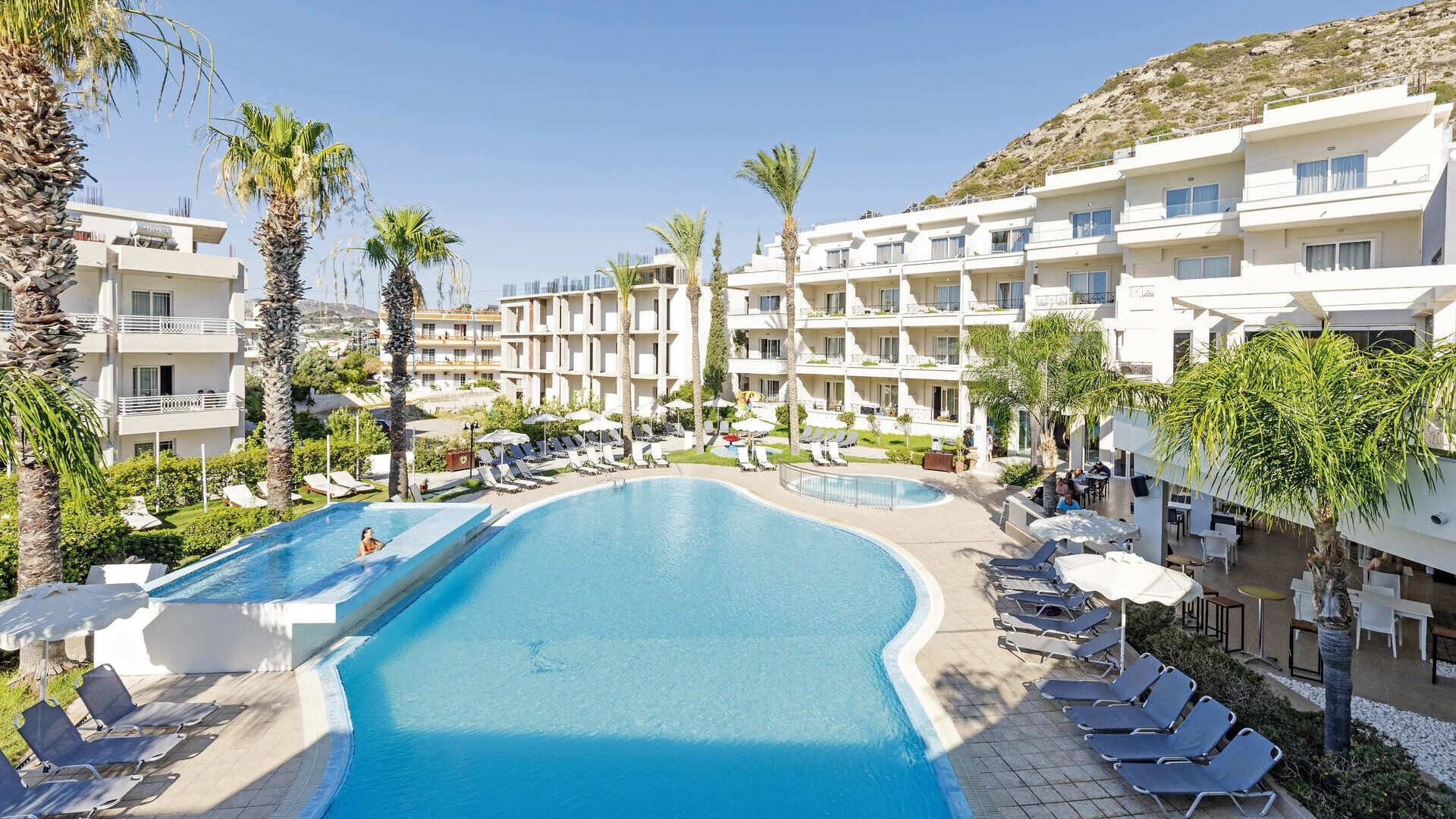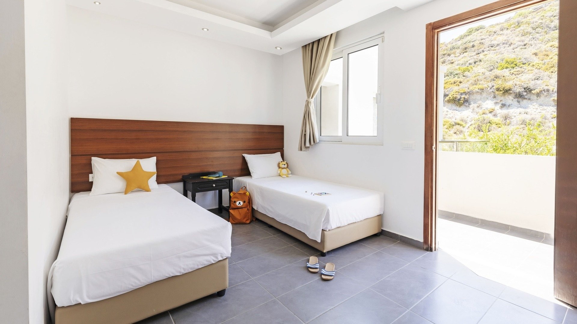 130 camere di cui standard (24 m2) dotate di servizi privati, asciugacapelli, aria condizionata, TV satellitare, connessione Wi-Fi gratuita, minifrigo, telefono, terrazza o balcone. Disponibili con supplemento, camere family (30 m2 – max 4 adulti) alcune con unico ambiente, altre con due ambienti semi-separati (senza porta) con 3° e 4° letto aggiunto.