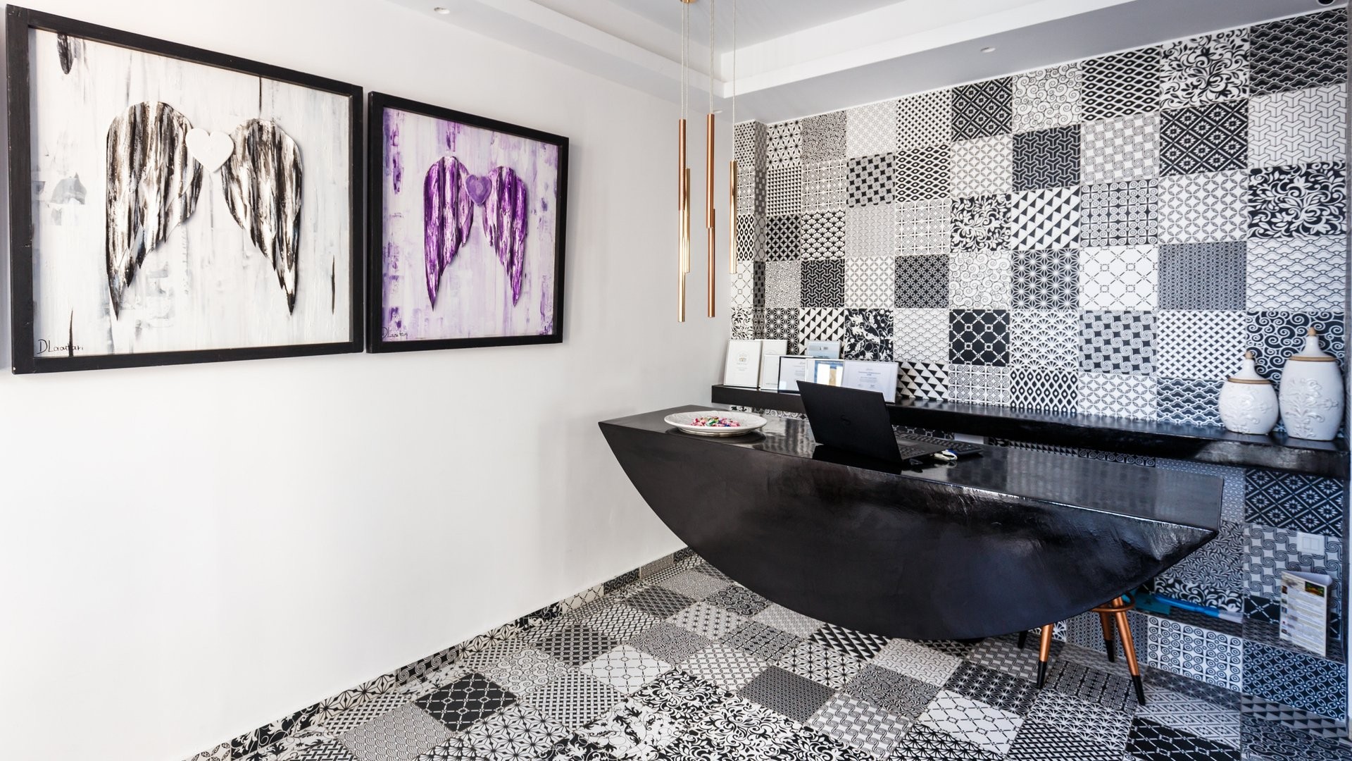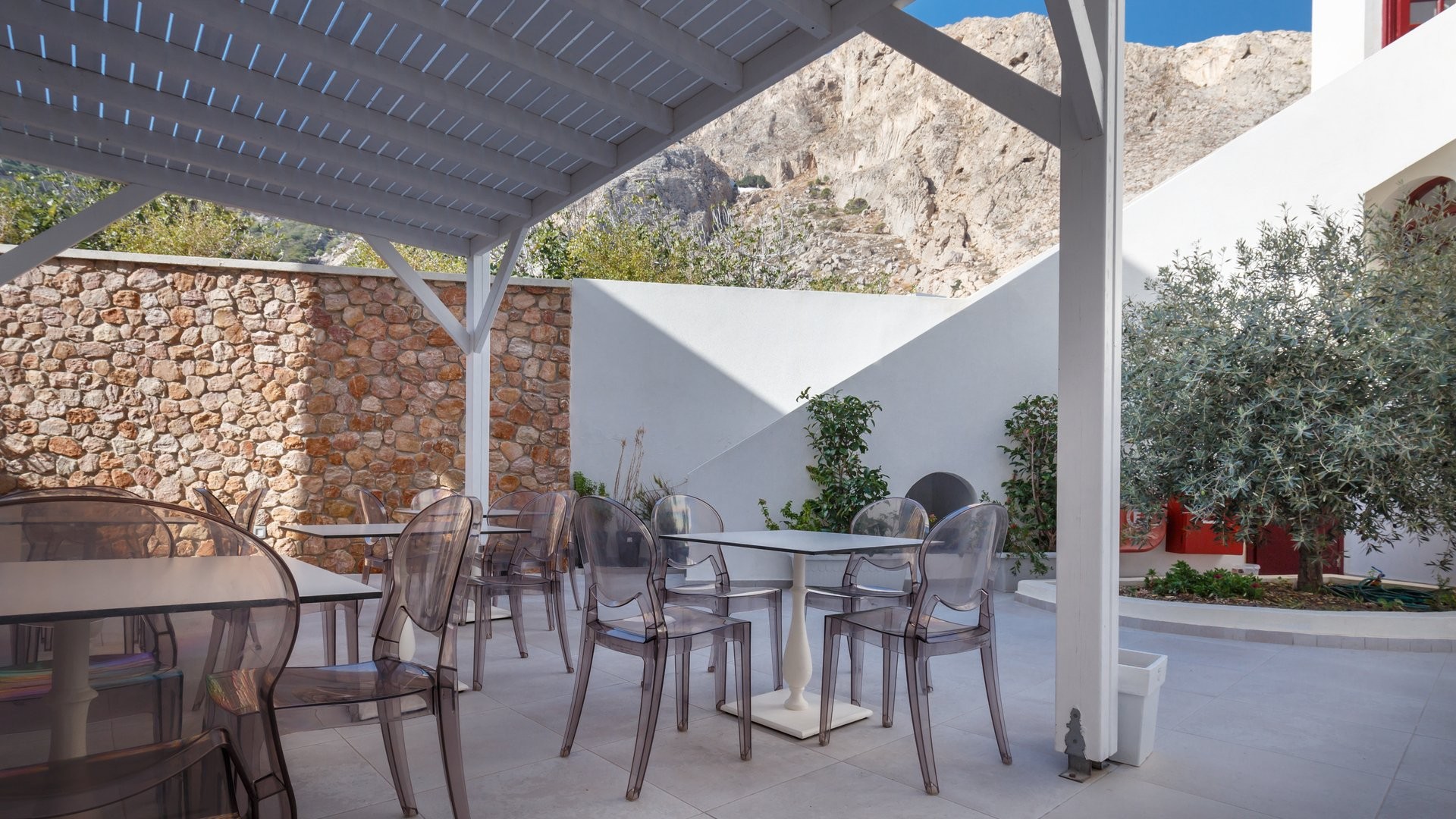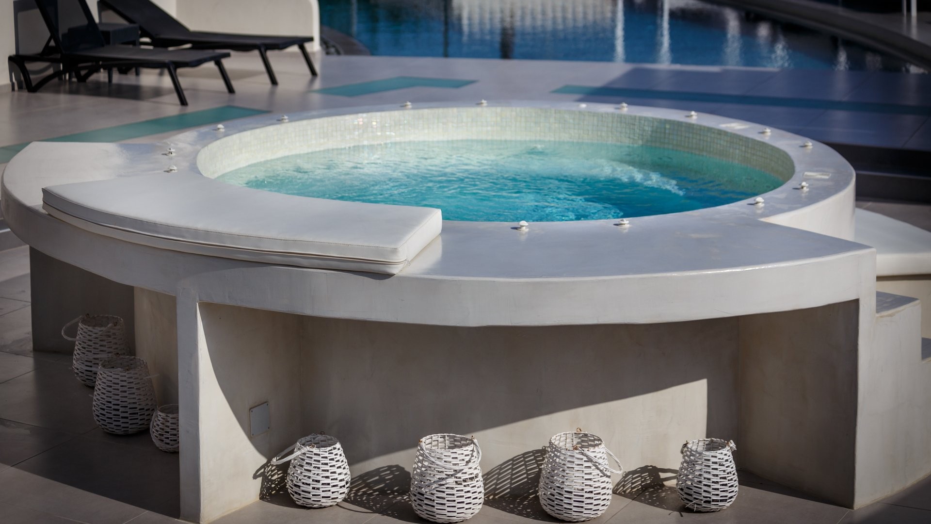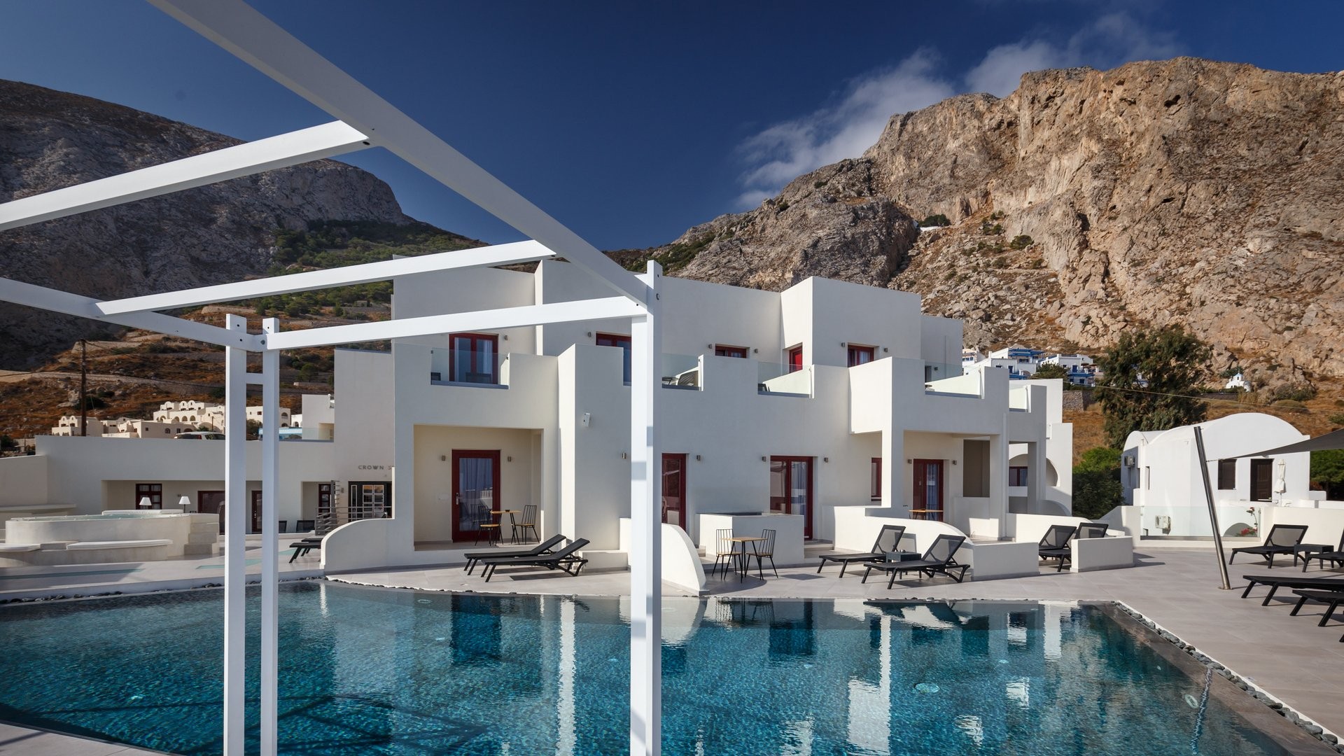 Elegante 4 stelle a Kamari dallo stile moderno e mediterraneo. Vicino alla spiaggia nera, offre una piscina relax e facile accesso alla vita serale e a Thira. Perfetto per vivere il mare e l'essenza dell’isola.