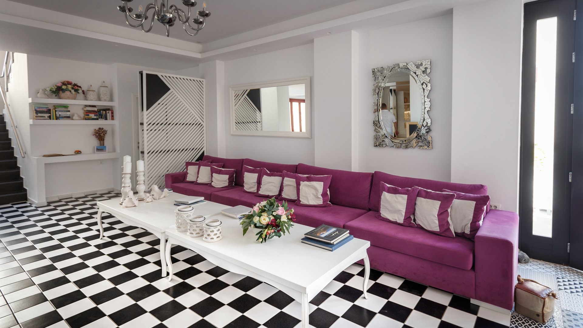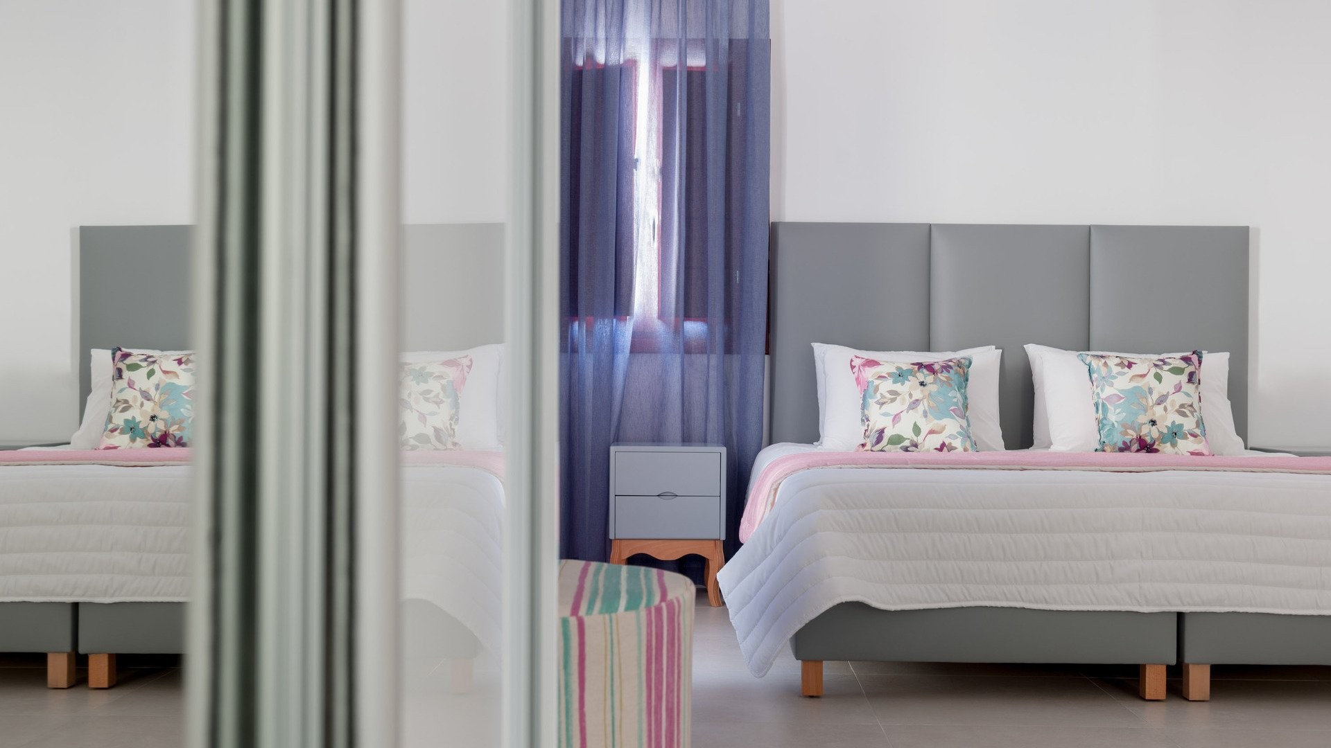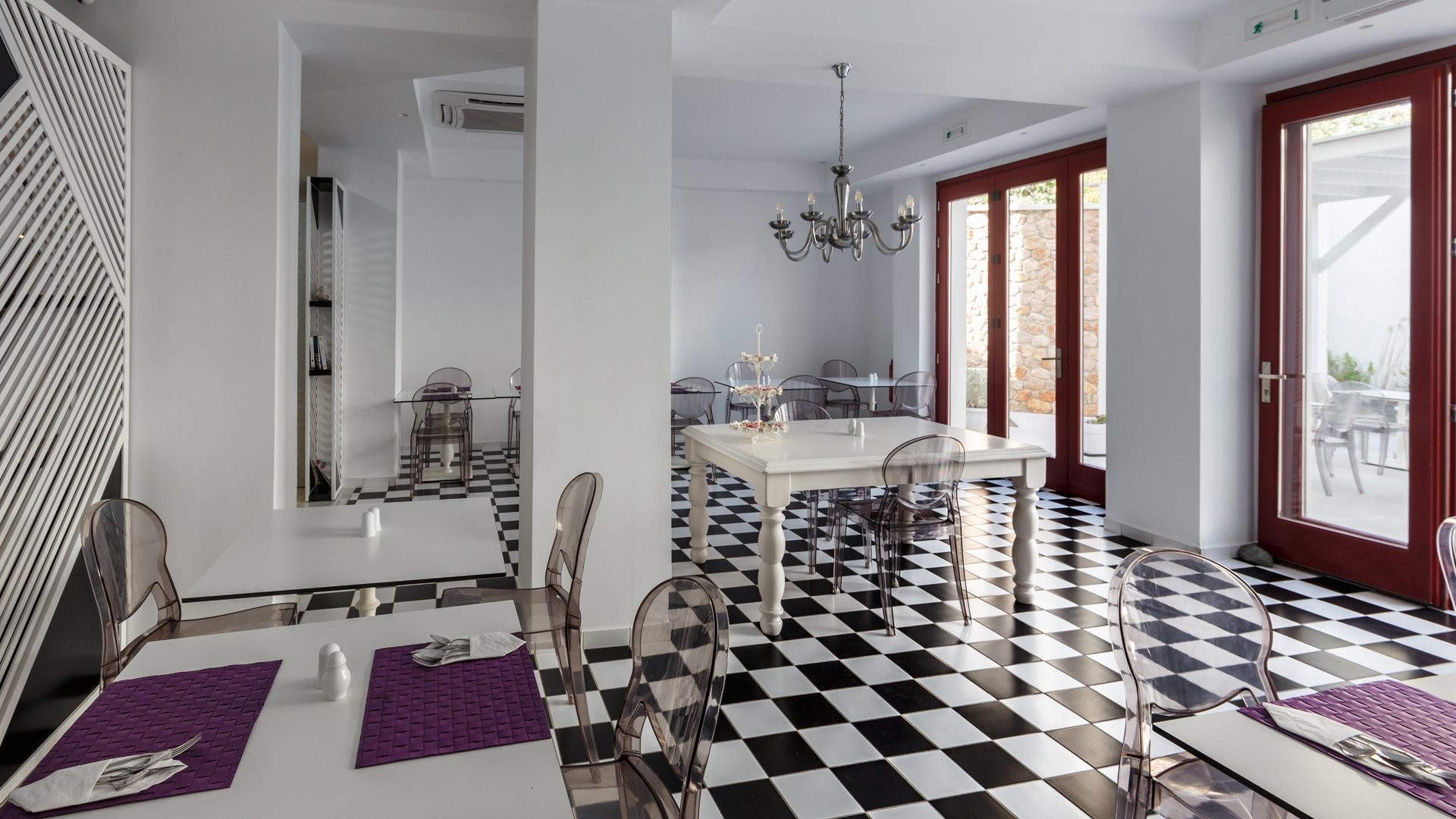 Kamari, a 300 m dalla spiaggia, 10 km dal porto, 8 dalla città, 5 dall’aeroporto. Fermata bus a 100 m.