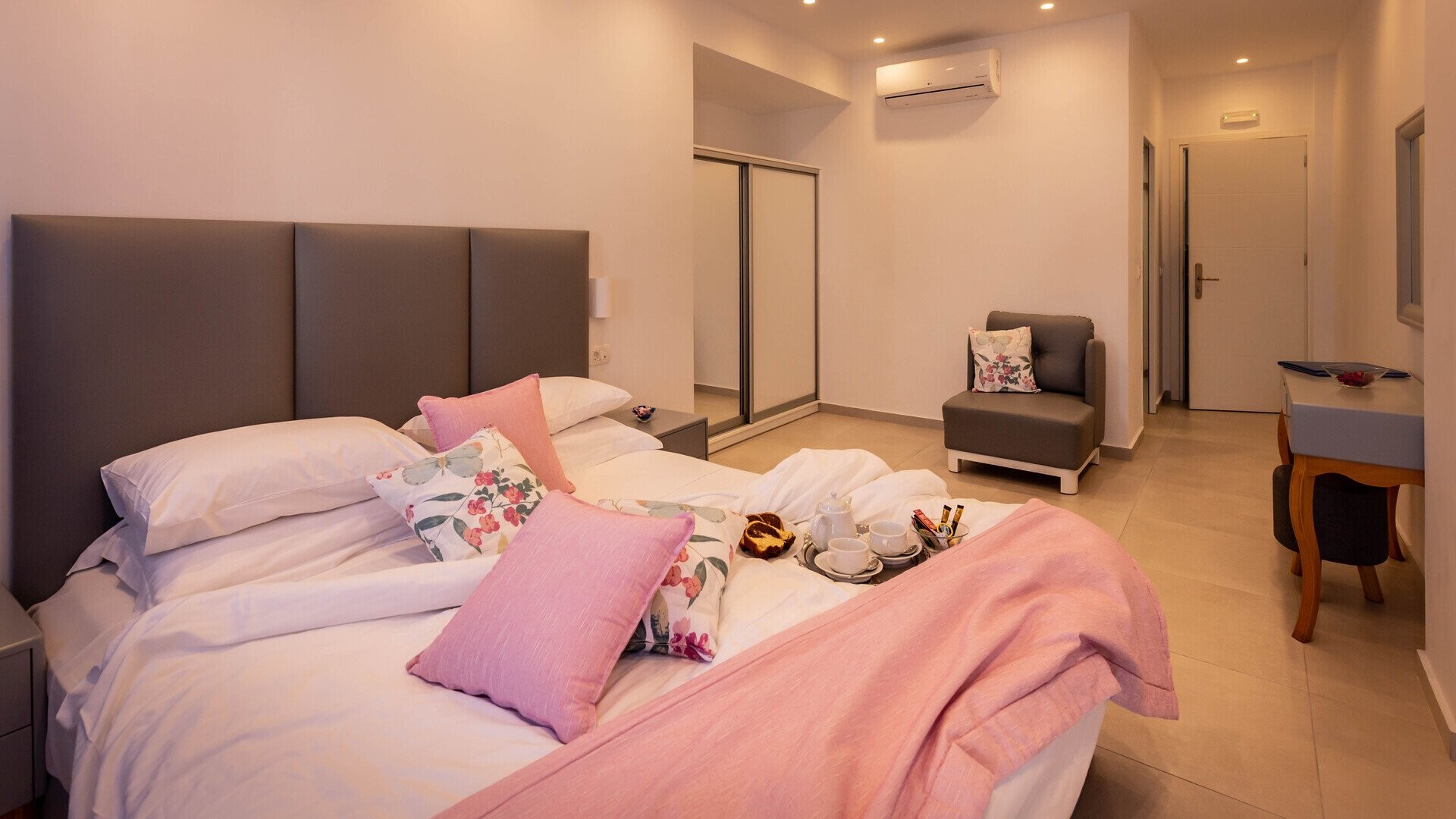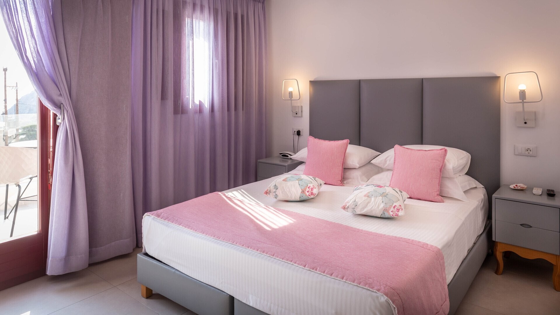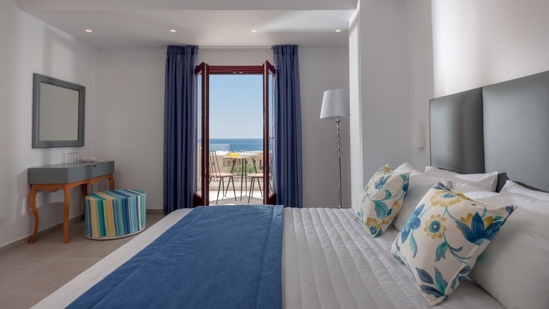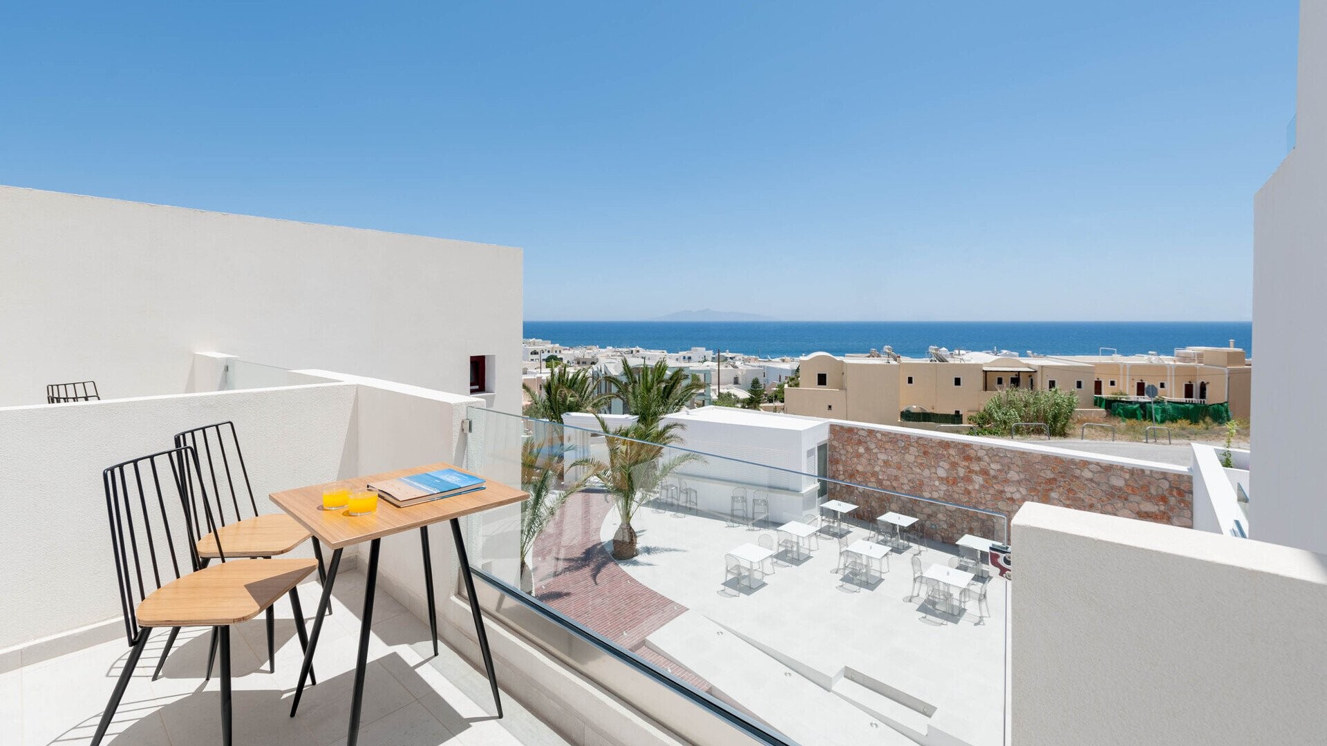 Mar ’n’ Mar Crown Hotel and Suites è un hotel a 4 stelle situato a Kamari, una delle località balneari più amate dell’isola di Santorini. I suoi ambienti sono moderni e curati nei dettagli, con una combinazione di comfort contemporaneo e stile mediterraneo, esaltata dai tradizionali colori bianco e blu delle Cicladi. La piscina all’aperto rappresenta un angolo di tranquillità, davvero l’ideale per rilassarsi dopo una giornata trascorsa tra mare ed escursioni. La spiaggia, a pochi minuti a piedi, non ha bisogno di presentazioni: in pochi passi il mare più blu dell’isola, accentuato dal contorno nerissimo della sabbia e del promontorio a sud che separa Kamari dalla vicina Perissa. Dopo intense giornate vissute in spiaggia o nell’esplorazione di questa piccola splendida isola, dal sito archeologico di Akrotiri fino al tramonto nella splendida Oia, fermatevi in una delle tante taverne sul lungo mare per esplorare la variegata cucina dell’isola, che offre parecchie particolarità introvabili nelle altre isole. Dopo cena, certamente non mancheranno le possibilità per un buon cocktail e della buona musica in tutto il lungomare. Per serate più vivaci, il capoluogo Thira si trova comunque a meno di mezz'ora di auto.