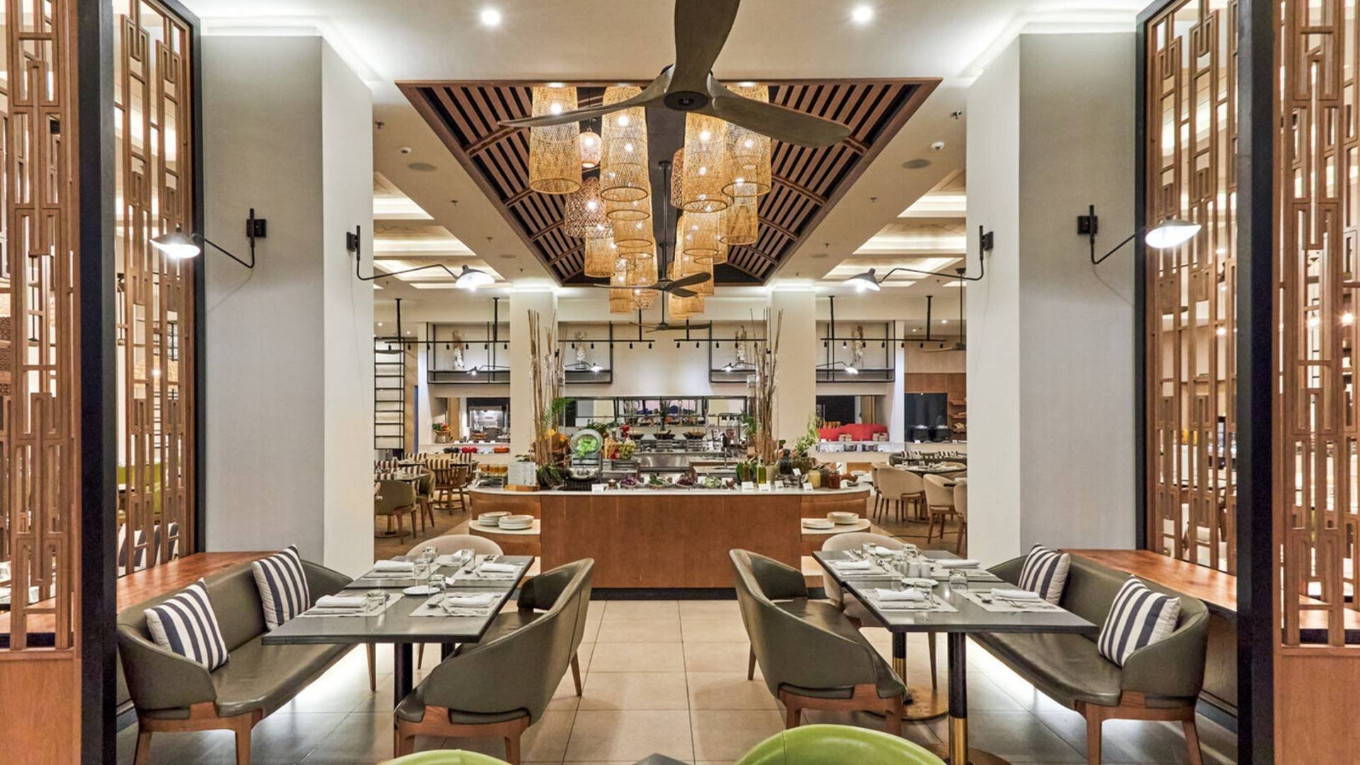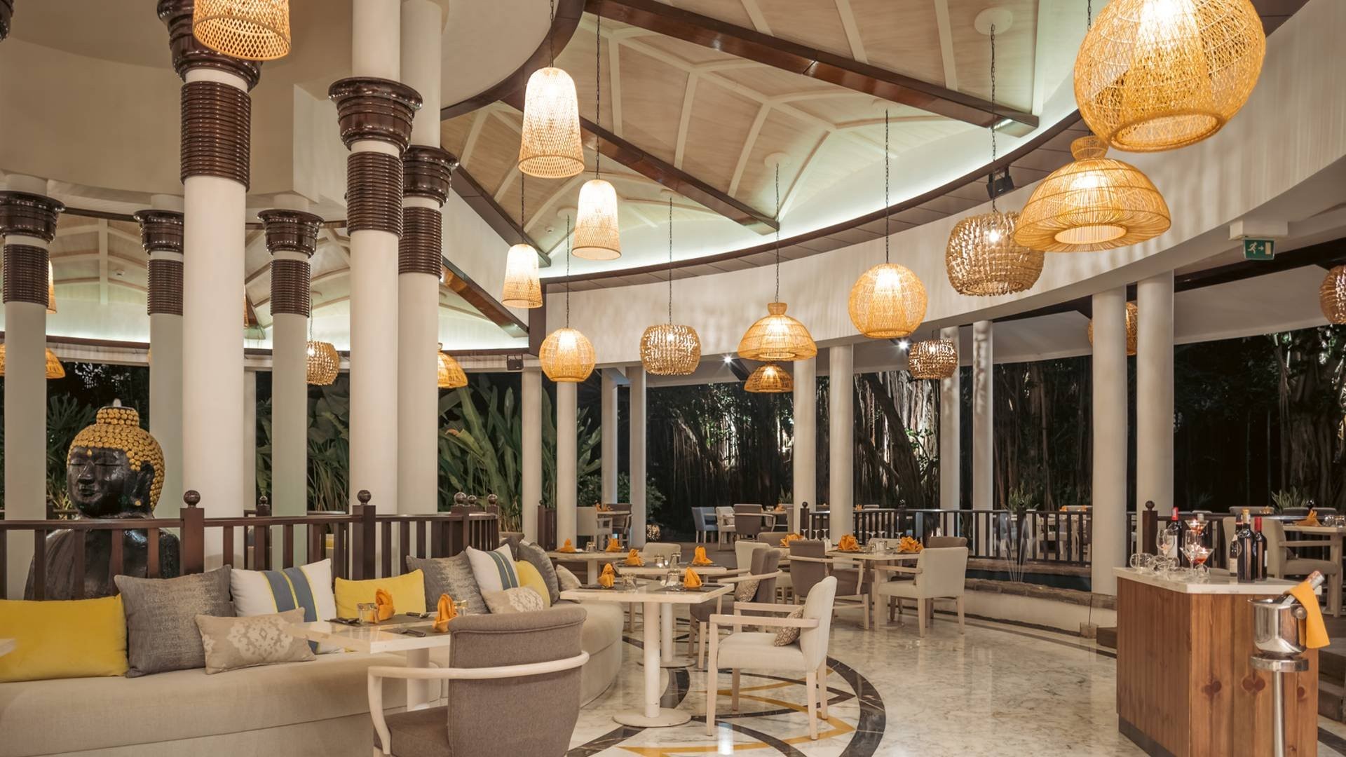 4 ristoranti (NB bevande escluse), il principale a buffet Senso, e 3 à la carte (gratuiti con menu fisso di tre portate), il Segala Restaurant mediterraneo, il Noble House asian-fusion, e il Veda con cucina indiana. 2 bar, Sugar Cane in zona piscina e Lobby Bar.