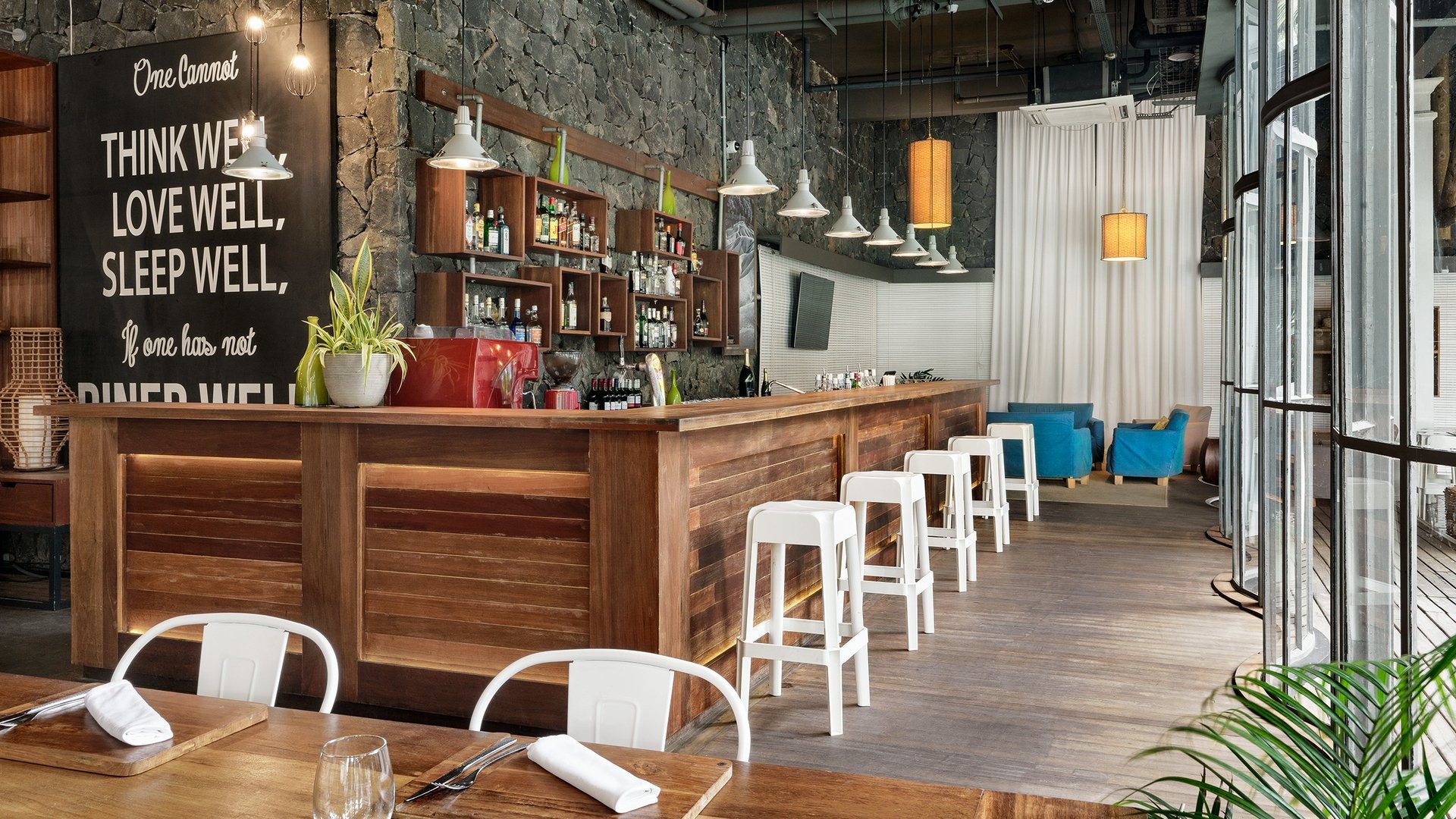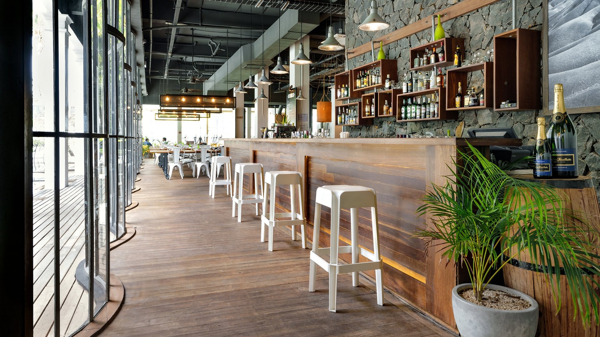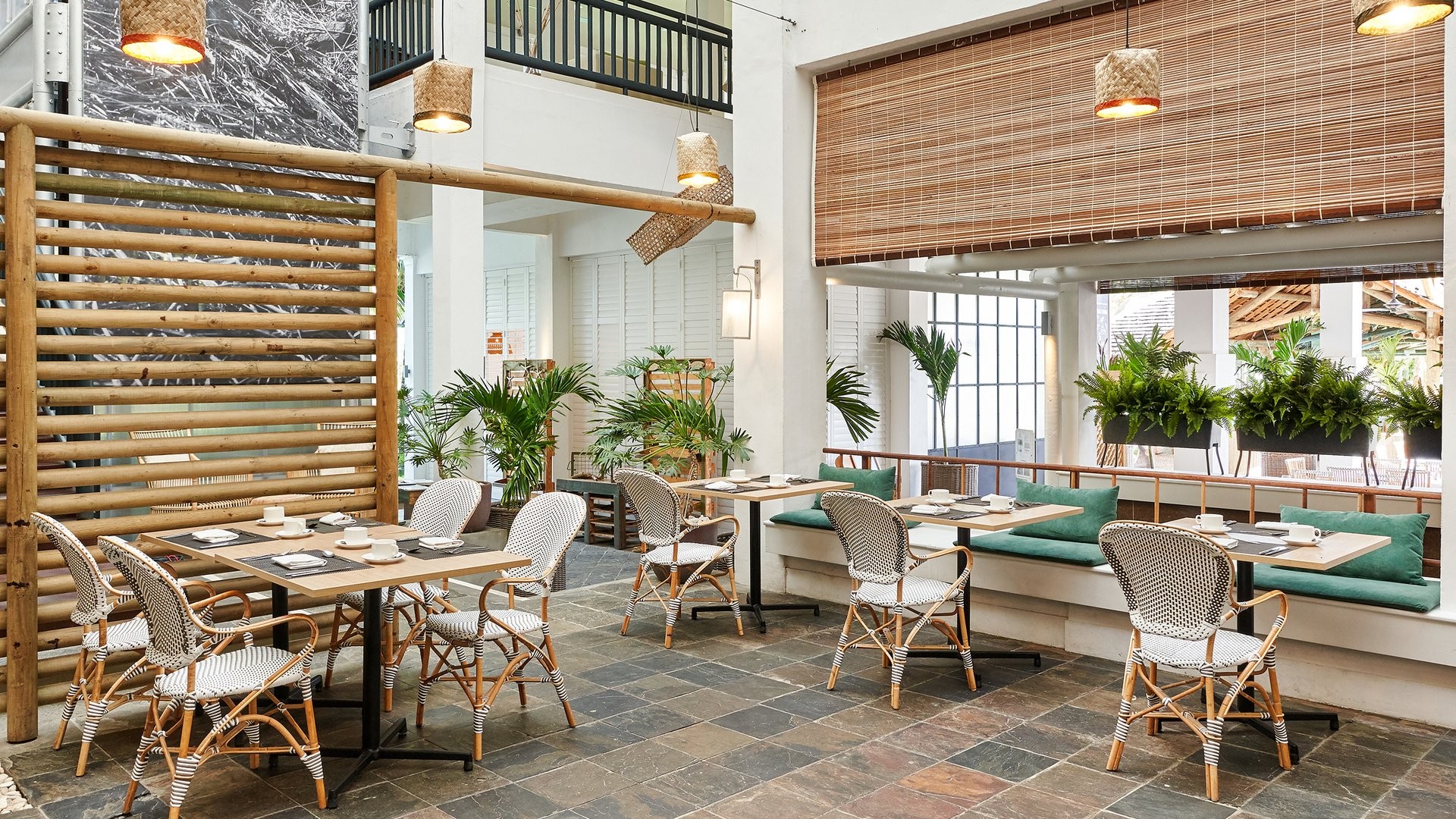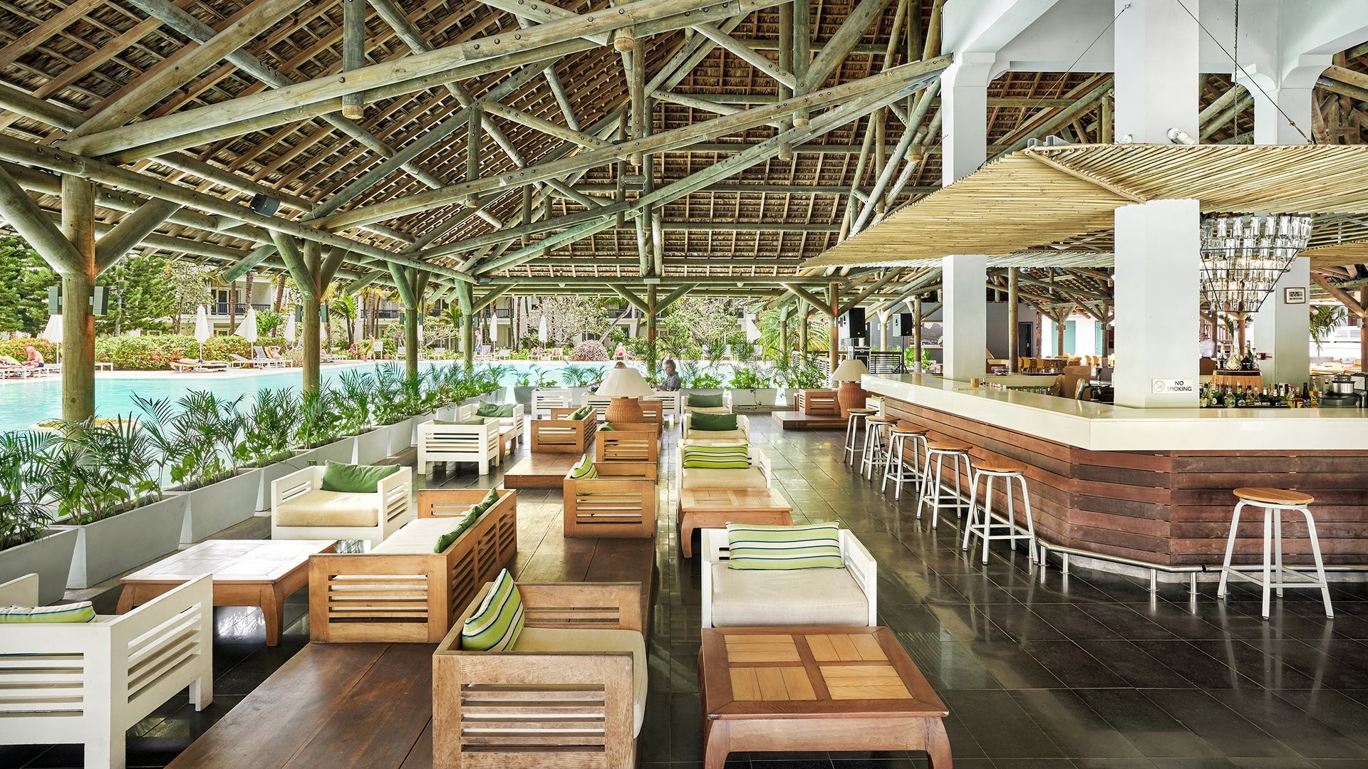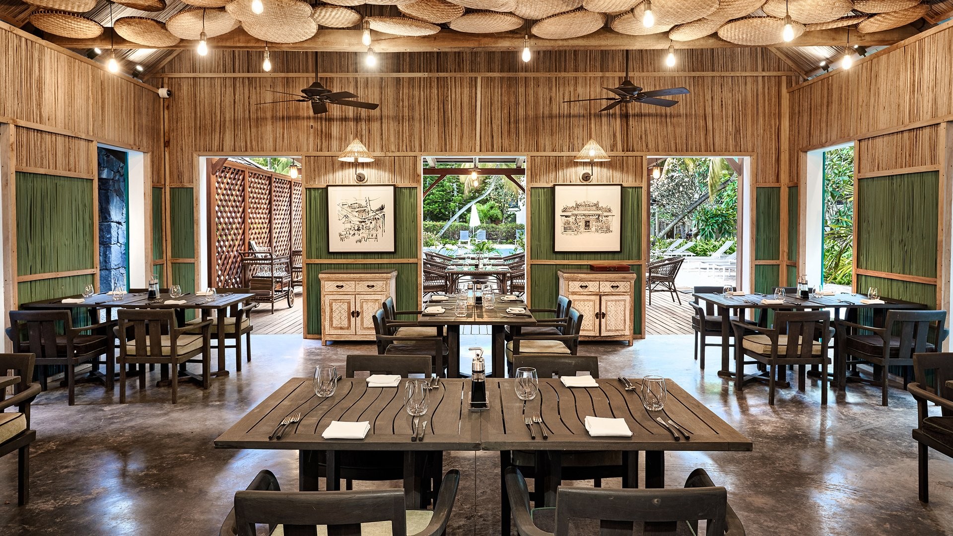 9 ristoranti, di cui il principale a buffet Mozaik, e 8 ristoranti à la carte, The Bistrot con insalate, hamburger e gastronomia varia, Ō con specialità mediterranee e Taba-j di street food mauriziano (aperti per pranzo e cena gratuitamente, Taba J solo pranzo); Madame Ming di cucina asiatica, A Tavola!, italiano, e Kot Nou con cucina locale gourmet (aperti solo a cena gratuitamente). Riviera con specialità di frutti di mare e Lime di cucina giapponese sono invece a pagamento per soli adulti e aperti solo per cena. 6 bar, Ō Beach Bar, Balcony Bar, Pool Bar, The Bistrot, Sky Bar e un disco bar, After, che apre dalle 23 in poi. I clienti potranno usufruire della formula di mezza pensione libera che consentirà di avere tanti pasti quante sono le notti di soggiorno, anche due nello stesso giorno, avvisando la reception 48 ore prima.
