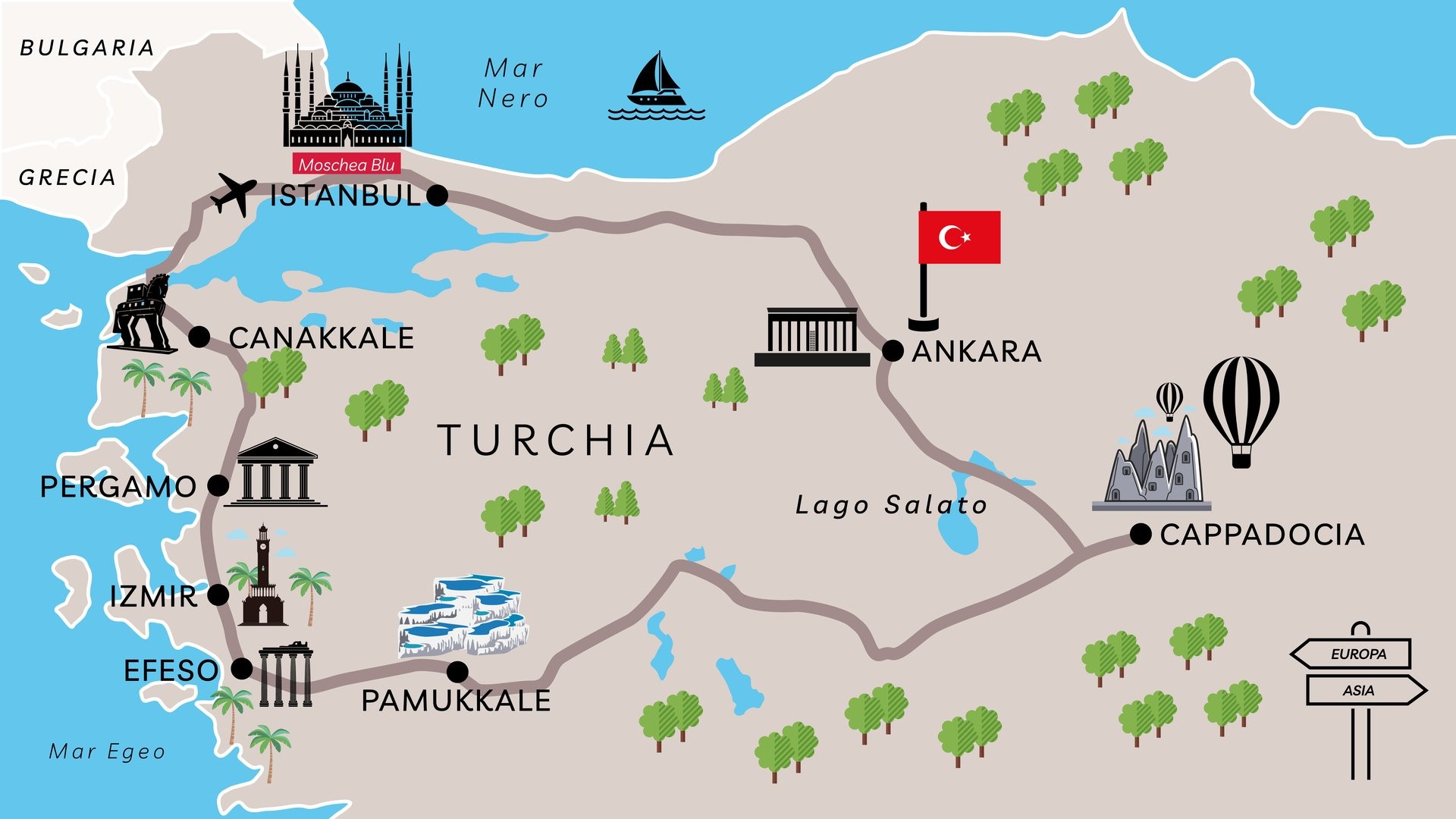 Dopo colazione,si parte per Pergamo una delle città antiche più importanti dell’Asia Minore, dove nell’Acropoli sulla collina sovrastante della città moderna, vi sono i resti della celebre biblioteca, un tempo una delle più grandi del mondo antico, il suggestivo teatro con vista mozzafiato, i Templi di Dionisio, l’altare monumentale di Zeus e visita all’Asclepion, l’antico centro di cura dedicato al dio della salute, Esculapio. Pranzo in ristorante e ripartenza per la leggendaria Troia dove visiterete le rovine dell’antica città. Trasferimento in hotel, cena e pernottamento.