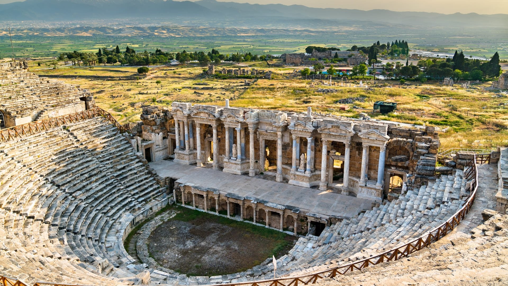 Per chi non avesse partecipato all’escursione in mongolfiera, o per chi vuole raddoppiare lo stupore e la meraviglia, è possibile, prima di lasciare la Cappadocia, fare un’escursione in Jeep (facoltativa, a pagamento) per poter ammirare i paesaggi unici della Cappadocia, le sue valli, le incredibili formazioni rocciose e le dolci colline. Un itinerario ricco di fermate per fotografare i paesaggi e le caratteristiche mongolfiere in volo. Dopo colazione si parte per Pamukkale attraverso montagne e vallate. Visita del Caravanserraglio Sultanhani (o Agzikarahan o Alayhan), risalente al XIII secolo, oggi museo. Pranzo in ristorante, sosta in una cooperativa artigianale dove viene ancora prodotto il celebre Buldan Cloth (tessuto già apprezzato ai tempi dell’Impero Ottomano per la sua qualità e raffinatezza). Proseguimento per Pamukkale con visita dell’antica città di Hierapolis e delle piscine terrazzate di calcite bianche dove i visitatori saranno sorpresi di vedere sul pendio della collina e addossate le une alle altre, decine di enormi vasche formatesi dal lento e millenario scorrere dell’acqua calcarea. Trasferimento in hotel, cena e pernottamento. Possibilità di un bagno nella piscina termale dell’hotel. Dopo cena, possibilità di partecipare allo spettacolo (facoltativo, a pagamento) dei Dervisci Danzanti.