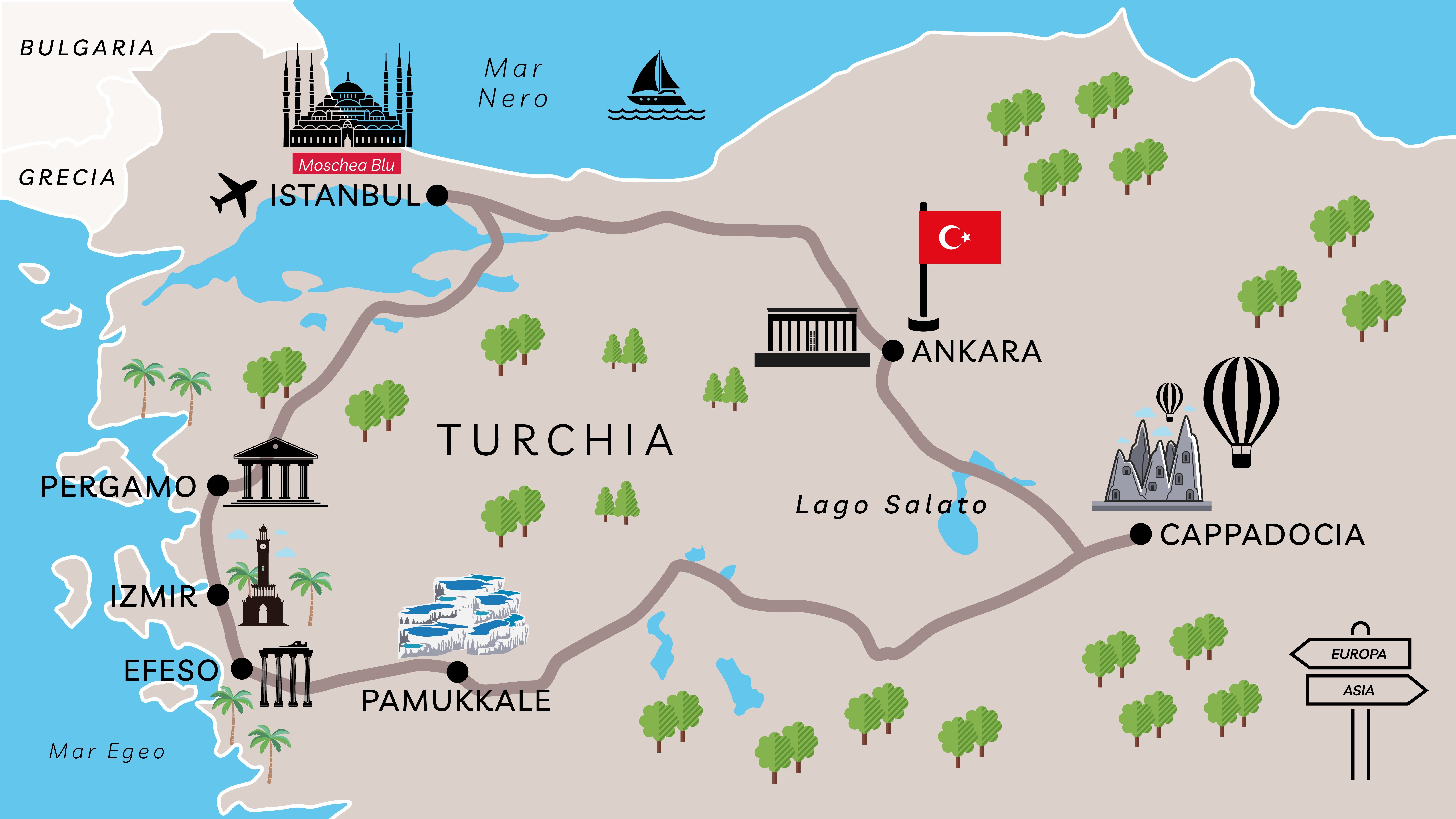 Dopo colazione, spostamento verso la Zona Antica della città passando per il Corno d’Oro, l’antico porto dell’epoca bizantina prima e di quella ottomana dopo. Visita dell’antico Ippodromo, degli obelischi, della Moschea di Sultanahmet, meglio conosciuta come la Moschea Blu, nome dovuto al colore delle ceramiche e maioliche che adornano le sue pareti e le cupole interne. A seguire, avrete tempo libero a sufficienza per visitare in autonomia (ingressi esclusi) la Cisterna Basilica, antico deposito di acqua costruito da Giustiniano I dove potrete ammirare l’imponente colonnato sotterraneo immerso nell’acqua (noterete, tra le altre, due colonne con alla base immense teste di Medusa), e la Chiesa di Santa Sofia, capolavoro dell’architettura bizantina, oggi trasformata nuovamente in moschea. Pranzo presso ristorante in centro e, a seguire, visita del Palazzo Imperiale di Topkapi (sezione Harem e la Chiesa di Santa Irene incluse), dimora dei Sultani per quasi quattro secoli, la cui architettura, le magnifiche decorazioni, gli arredi e i tesori nascosti al suo interno, testimoniano la potenza e la maestosità dell’Impero Ottomano. Si prosegue poi verso il Gran Bazaar, il più grande mercato coperto al mondo, caratterizzato dal tetto a cupole e da un articolato dedalo di vicoli e strade dove avrete la possibilità di mercanteggiare con i negozianti per aggiudicarvi ceramiche, sciarpe, souvenir e oggetti di qualsiasi foggia. Nel tardo pomeriggio, possibilità di partecipare all’escursione (facoltativa, a pagamento) della Crociera sul Bosforo, per poter ammirare il versante asiatico e quello europeo della città, i palazzi, le moschee e le fortezze che si affacciano su questo punto nevralgico ed emblematico della città. Rientro in hotel, cena e pernottamento.