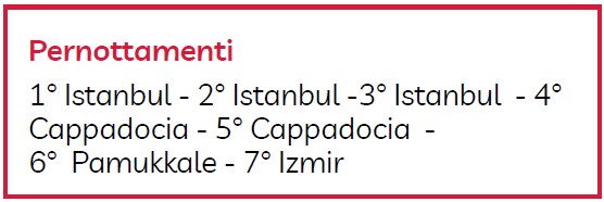 Dopo colazione, check out e partenza per Efeso dove verrete guidati alla scoperta di una delle città dell’epoca Classica meglio conservate: il Tempio di Adriano, la Biblioteca di Celso, il Grande Teatro e l’Ephesus Experience Museum sono solo alcune delle meraviglie che potrete vedere. Sosta in una pelletteria e poi pranzo in ristorante. Partenza per Izmir, la terza città più grande del Paese, riconosciuta per la sua atmosfera moderna e vivacissima. Trasferimento in hotel, cena e pernottamento.